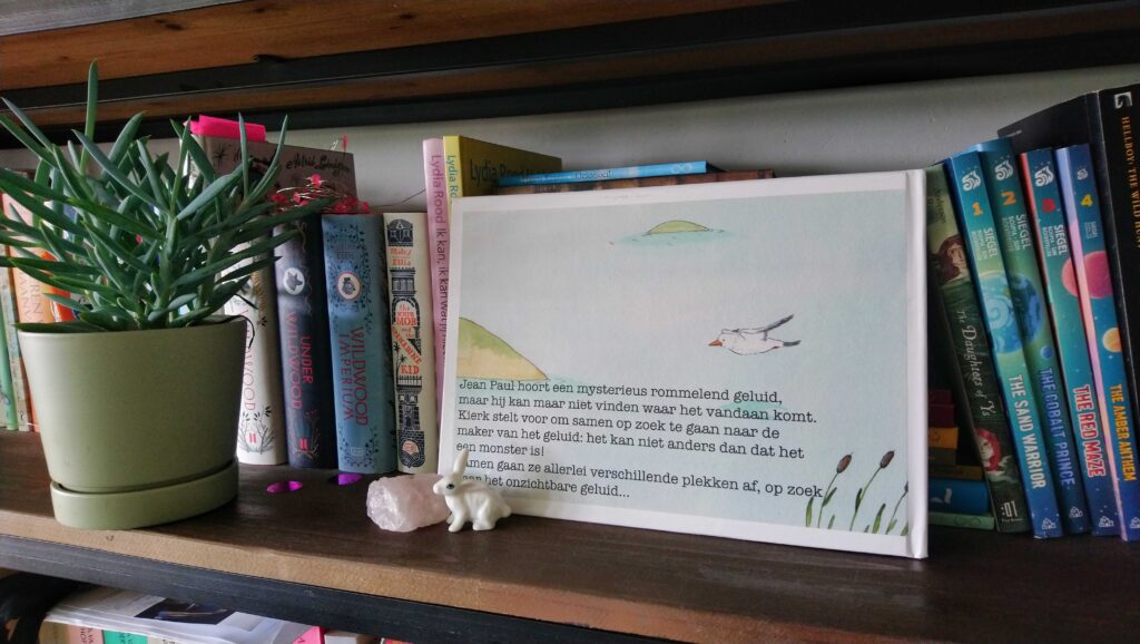 In 2019 werkte ik aan mijn eigen prentenboek, Jean Paul & Kierk en het Onzichtbare Geluid. Het boek bereikte de longlist van de Clavis Key Colours wedstrijd in 2020. Potlood, fineliner en verf op 300g/m aquarelpapier (afbeeldingen gemaakt op A4 formaat), nabewerkingen in Krita, samenstelling boek in Adobe InDesign.
