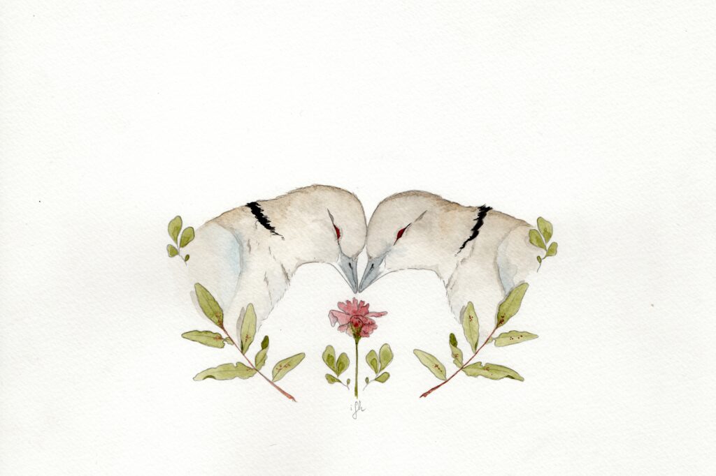 Een prent gemaakt als cadeau voor een bruiloft. Potlood en verf op A4 300g/m aquarelpapier.