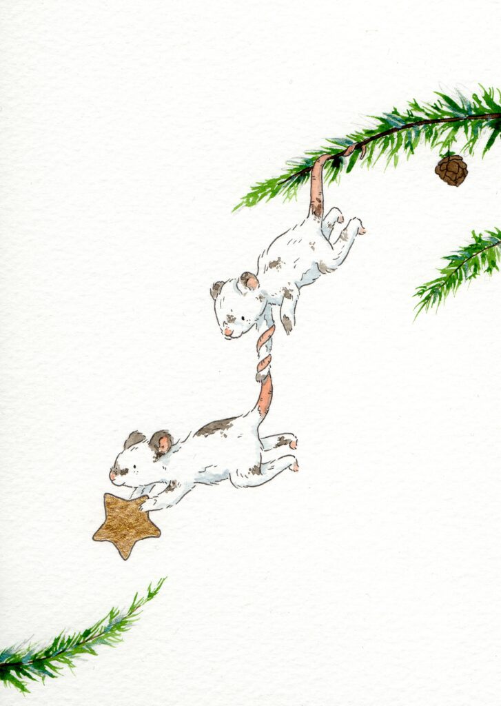 Diverse verjaardags- en kerstkaarten gemaakt tussen 2020-2024. Potlood, fineliner en verf op A6 300g/m aquarelpapier.
